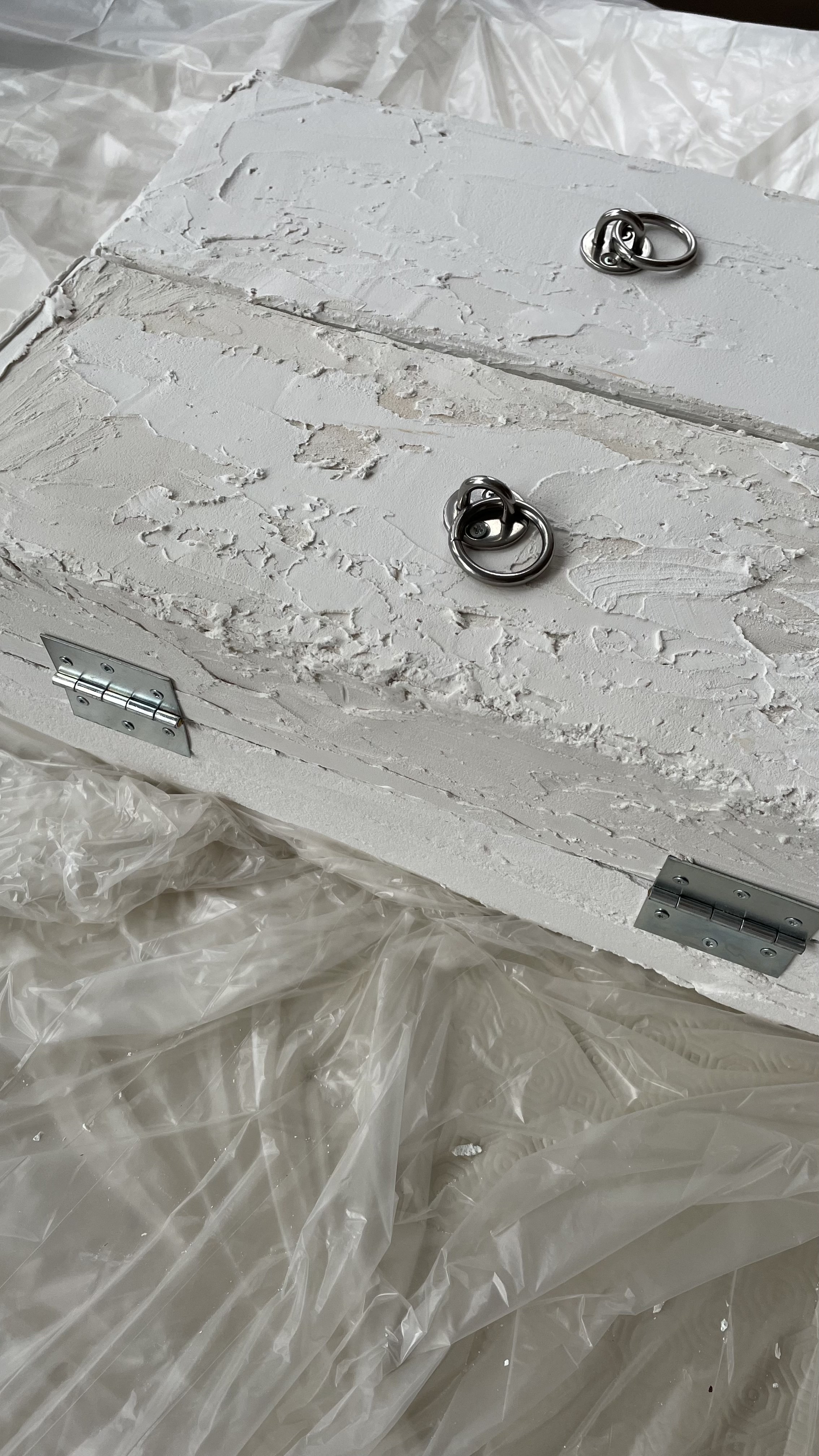 triptych “box” - “St Philip’s Road” 2024 acrylic on canvas - embossed aluminum saints - speakers